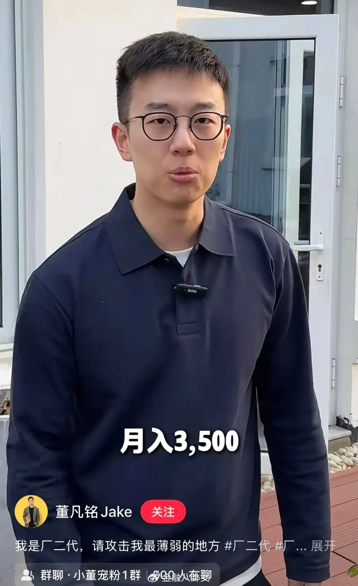 董凡铭在自己的自媒体视频里说,厂二代其实没有几个过得好的:
