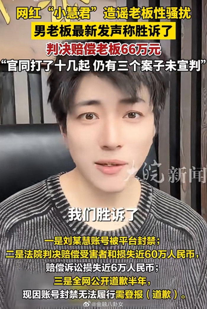 千万粉网红小慧君造谣老板性骚扰大结局,老板获赔66万,小慧君被封号后换平台重生?