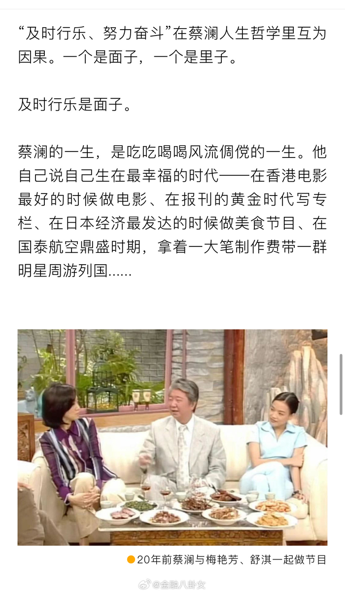香江“四大才子”时代正式落幕!“及时行乐、努力奋斗”在蔡澜人生哲学里互为因果。一个是面子,一个是里子。