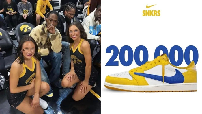 调色师Travis Scott以高中为灵感打造的黄蓝白配色倒钩各位应该都不陌生了,经历了多轮上脚带货曝光后,定档5月17日发售。网传20万双史上最大货量,有望实现人均?