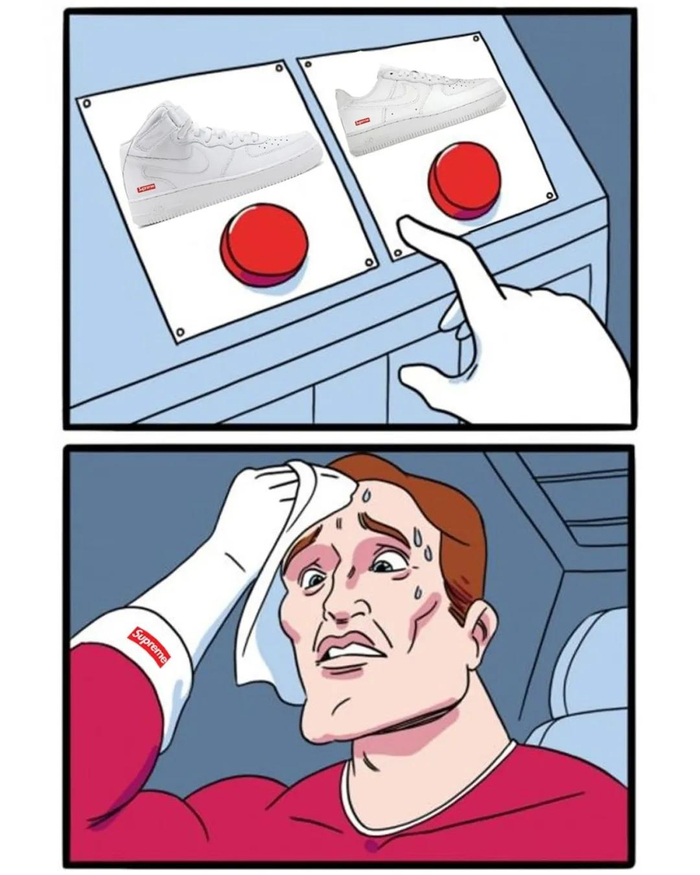 以及不知道Supreme此番仅仅是真的限量发售一波Mid款式,还是像黑白Low款式一样长期补货售卖,慢慢收割市场。害,反正怎么搞都没多大水花了,毕竟现在Supreme热度也就那样。