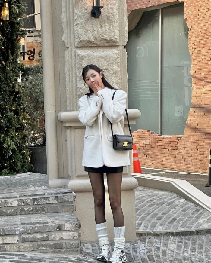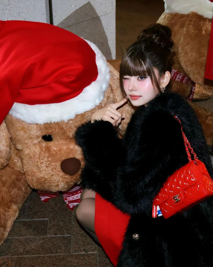 圣诞节的战服,李时安就上脚了"富婆快乐鞋"miumiu x NB530 SL,搭配皮草、红色上衣和波点纱裙也是把圣诞氛围感拿捏得恰到好处~