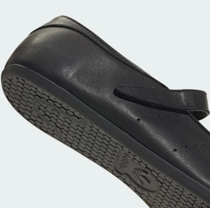 此番阿迪选择以经典的Stan Smith改良版薄底鞋型为蓝本,共带来纯黑和黑红两款简约百搭配色,鞋面采用通体牛皮材质搭配蜂窝外底,确保上脚舒适度,魔术贴加玛丽珍束带的配置方便穿着。