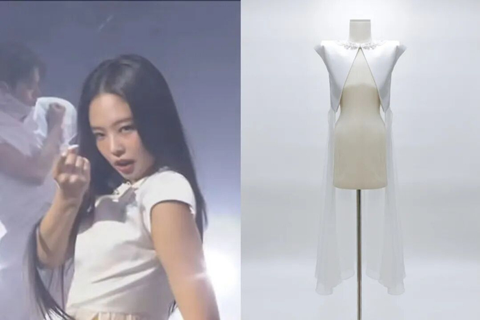 最后的颁奖环节Jennie在一众后辈的掌声中上台,镂空薄纱连衣裙同样来自Leje,灵感来源于佛国寺释迦塔端正平衡的建筑风格,通过薄纱点缀,仅显女王气场。