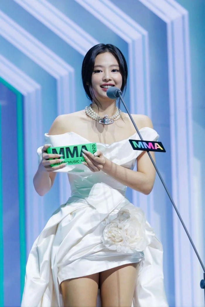 携新专辑回归的Jennie今年拿下年度制作、MMA Top10、百万流媒Top10三项大奖,领奖穿搭换上了西太后Vivienne Westwood 2026婚纱高定系列搭配土星珍珠项链,今年没少给西太后带货啊。