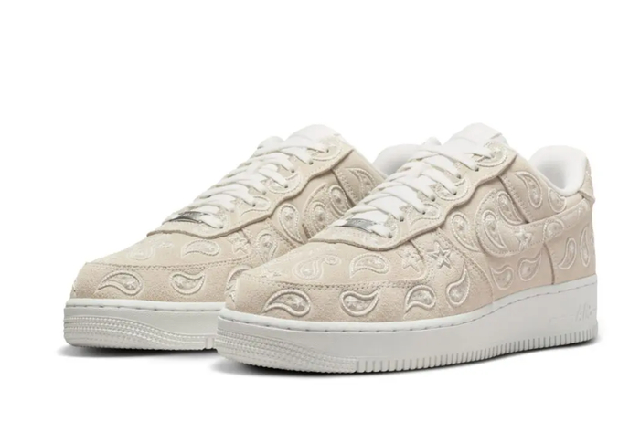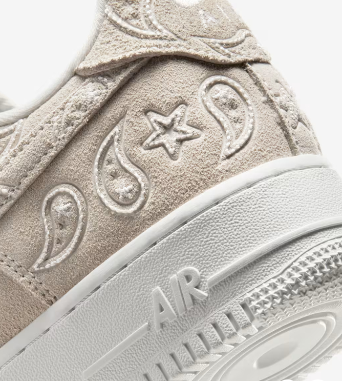 新配色依旧以经典的Air Force1 Low鞋型为蓝本,鞋面采用棕色和米白色麂皮材质打底,加入大面积浮雕工艺的腰果花图案呈现,最后搭载同色系外底收尾,颜值百搭耐看。