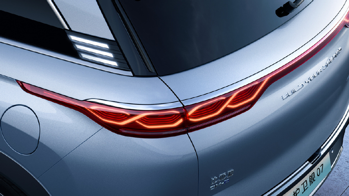 3、尾灯的设计则更加立体,两条交织的红色灯带更像是一个“∞”符号,如海浪般层叠交错。尾部则线条鲜明,更富有层次感和力量感。