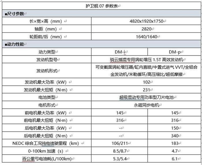 1、动力上,此次护卫舰07搭载的比亚迪DM-i超级混动系统,配备的电机最高功率可达145kW,最大马力可达197匹。而另一款DM-p版本,动力输出能力则更强,综合功率最高可达295kW,最大马力为401匹,零百加速也仅需4.7秒。这对于一款中大型SUV来讲,表现十分亮眼了。
