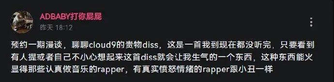 “事实上HIPHOP圈对CLOUD9的集体破防就是一种无能的表现”