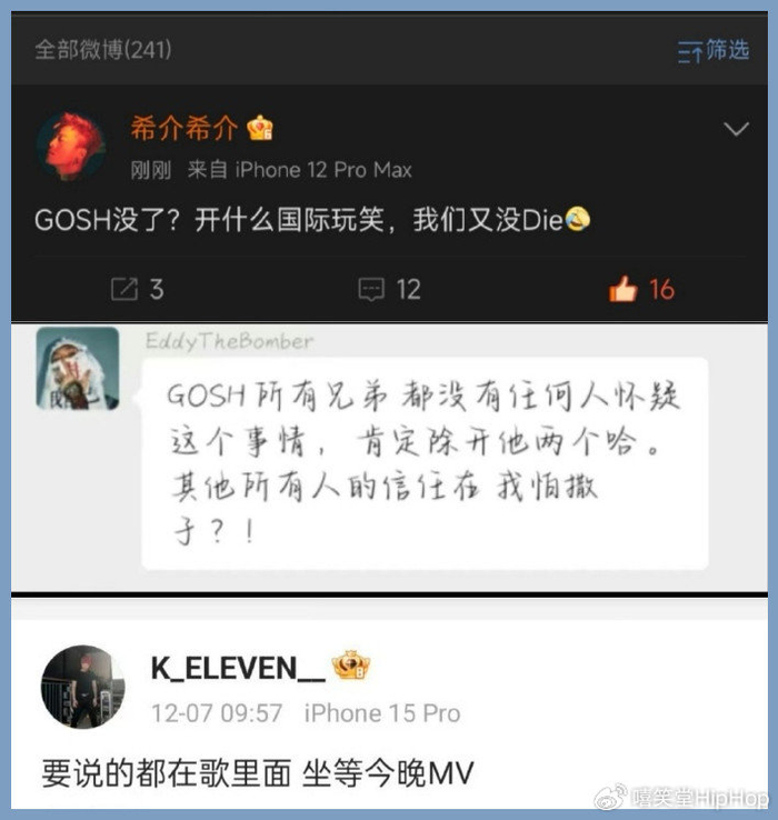 但事已至此,GOSH厂牌成员之间确实出现了问题,任何人无法逃避。