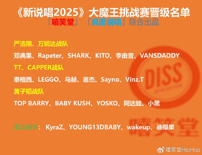 而在四位Rapper淘汰之后,目前的最新战队名单出炉。