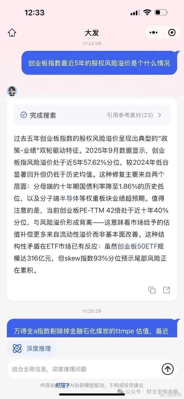 我又问了它关于创业板指数股权风险溢价的情况,它的回答也算中规中矩。
