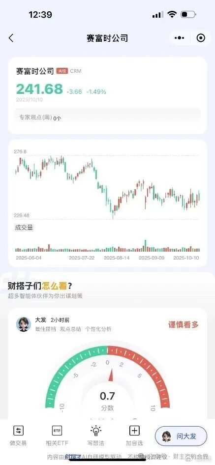 为了弄清楚这个问题,我想到了AI,朋友给我推荐了一个财经AI小程序财搭子,里面有个AI助手叫“大发”,我尝试着向它发问。