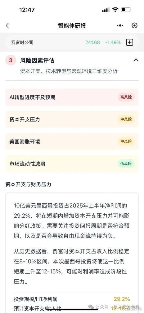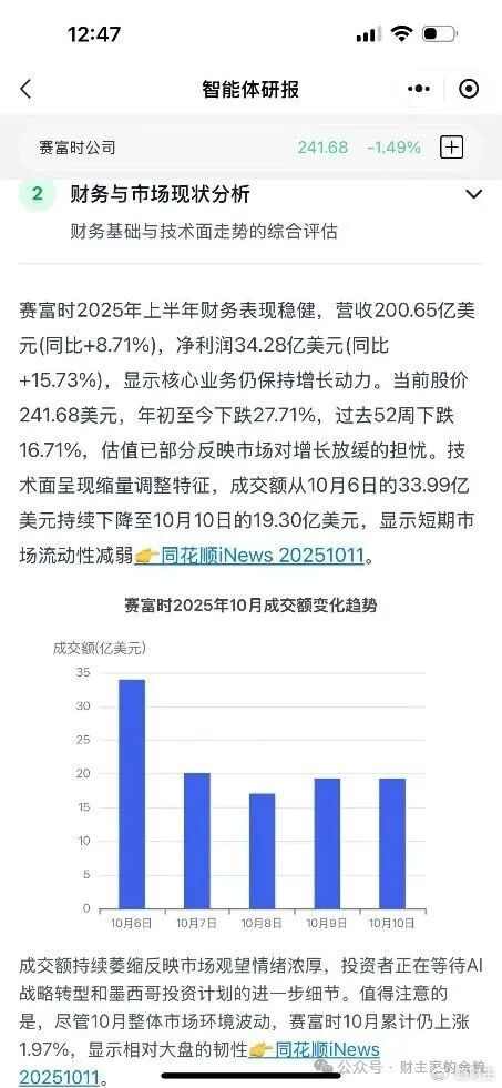 我特地选了一家美股公司赛富时和一家A股公司安琪酵母(股票仅本人测试使用,不构成任何投资建议),进入到资产分析报告环节,测试下这个“智能体”到底是个什么样子。