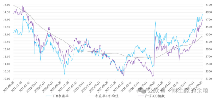 沪深300指数的TTM市盈率已经超过14.2倍,基本等于2021年牛市的高位。