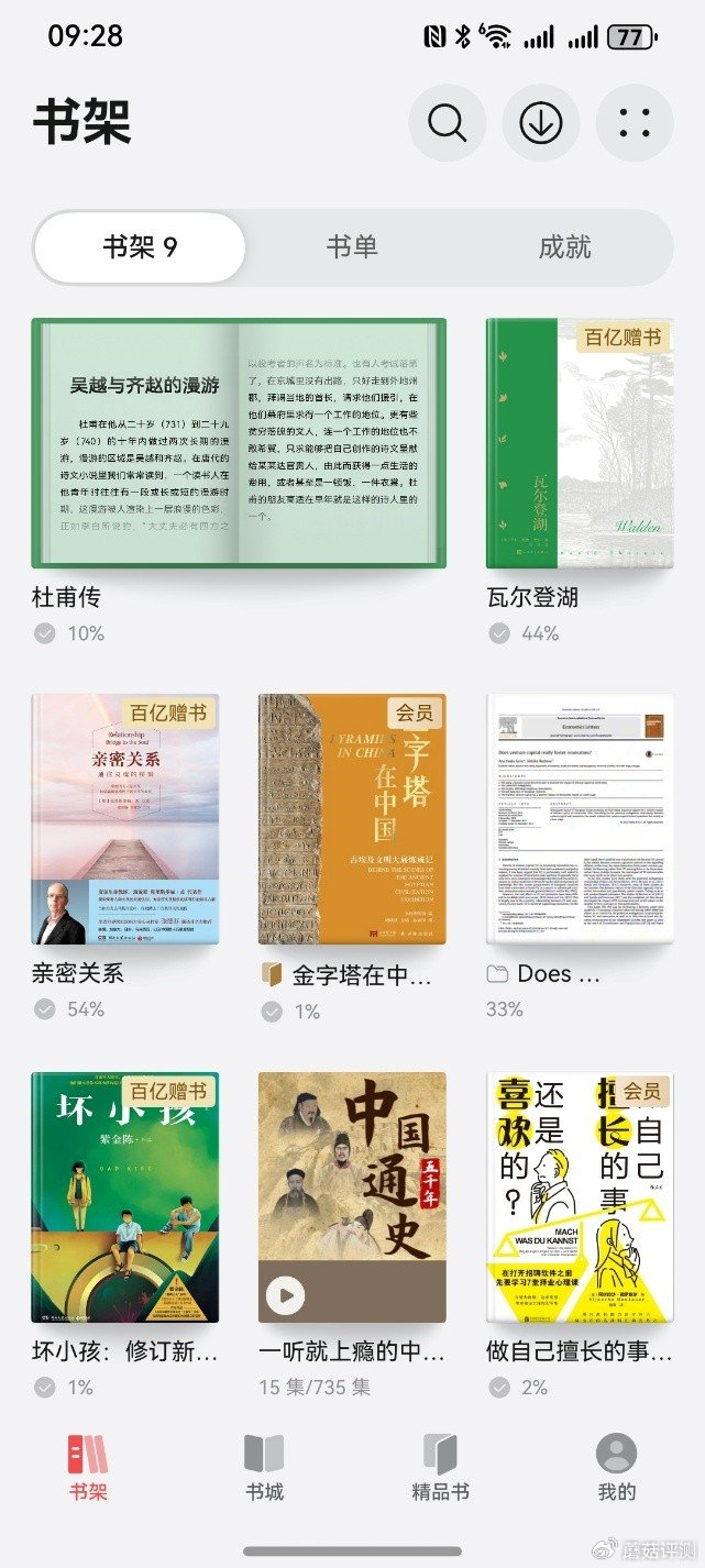 首先是,我“书架”内的书,都有了阅读进度显示,“督促”我抓紧读完那些Mark很久的好书。