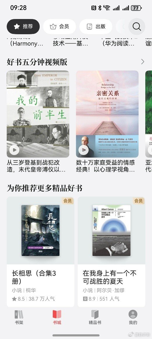 如果说“阅读成就”是帮我复盘过去,那“书城”里新增的“好书5分钟”视频讲书,就是我“早C”环节的效率神器。白天上课,时间紧张,我会点开某一本书的5分钟的精讲视频,视频里把全书的核心逻辑和精彩观点提炼出来,不仅让我快速获得了知识增量,也帮我精准判断出“这本书值不值得我花时间细读”,完美解决了我的选书困难症。