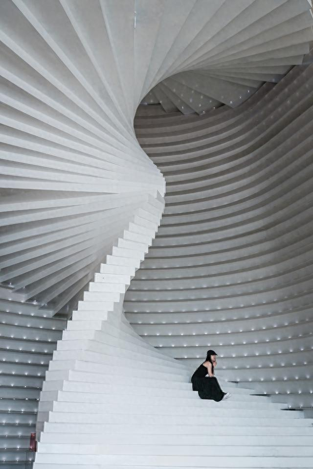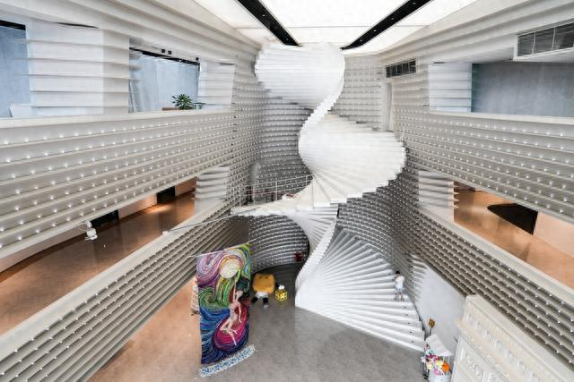 走进美术馆,首先映入眼帘的就是网上爆火的那个白色旋转楼梯,