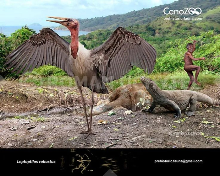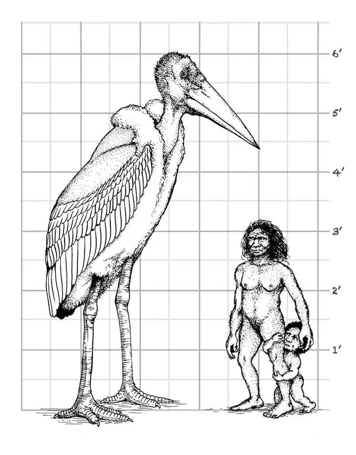 图注:强壮秃鹳与弗洛勒斯人的体型对比,图片来自网络