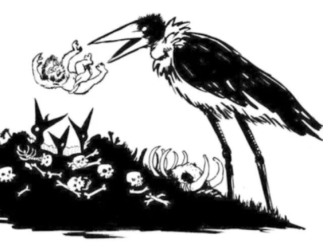 图注:强壮秃鹳猎杀弗洛勒斯人的漫画,图片来自网络以目前的发现来看,强壮秃鹳仅分布于面积有效的弗洛勒斯岛上,临近的岛屿上还没有找到它们存在的证据,这或许是因为弗洛勒斯岛能够提供足够的食物。大约在距今50000年前,强壮秃鹳消失了,它的消失是弗洛勒斯岛物种灭绝的一部分,原因很可能是划着小船而来的智人。智人的杀戮将弗洛勒剑齿象逼上绝路,失去食物的强壮秃鹳也难逃消失的命运。