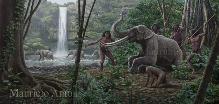 图注:生活在弗洛勒斯岛上的弗洛勒斯人和弗洛勒斯剑齿象,作者安东,图片来自网络强壮秃鹳的化石最早发现于弗洛勒斯岛上的梁布亚(Liang Bua)石灰岩洞穴,考古学家从洞穴中的更新世沉积物中收集了大量的骨骼碎片,其中最著名的当然是弗洛勒斯人。在众多骨骼碎片中,研究人员分辨出了属于大型鸟类的骨骼,这些骨骼属于同一个个体,而且已经成年。根据骨骼表现出来的特征,明显与现存的秃鹳相似,但是否属于现存物种无法确定。