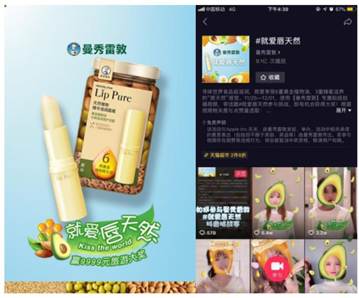 除了在品牌互动方面与Z世代玩在一起,曼秀雷敦还洞察到了Z世代的触媒习惯,其集结了不同领域的抖音头部达人为曼秀雷敦助力,同时在平台发起#就爱唇天然挑战赛,号召消费者参与互动。该活动话题的视频播放量高达9亿,参与人数高达27万,贴纸使用量高近23万。这次抖音挑战赛得到这么高的参与度,也是消费者对曼秀雷敦的再一次认可。