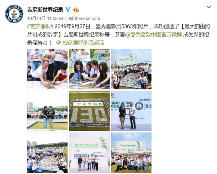 前面提到了参与感,但是营销只有参与感远远不够,在参与感的背后更需要让给消费者有成就感。在曼秀雷敦130周年庆上,消费者成就感的获得来源于一张打破记录的ending照片。曼秀雷敦创造性地把前述H5中汇集而成的5000多张消费者照片,由其全体员工亲手拼成了巨大的数字“130”,颇具震撼力。