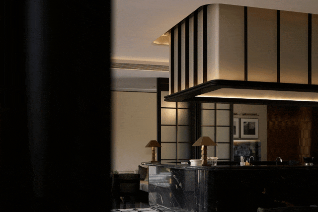 再比如中央园林,借鉴岭南园林风格融入现代空间美学,再搭配整块天然奢石打造的背景墙,在光影交错间尽显质感。