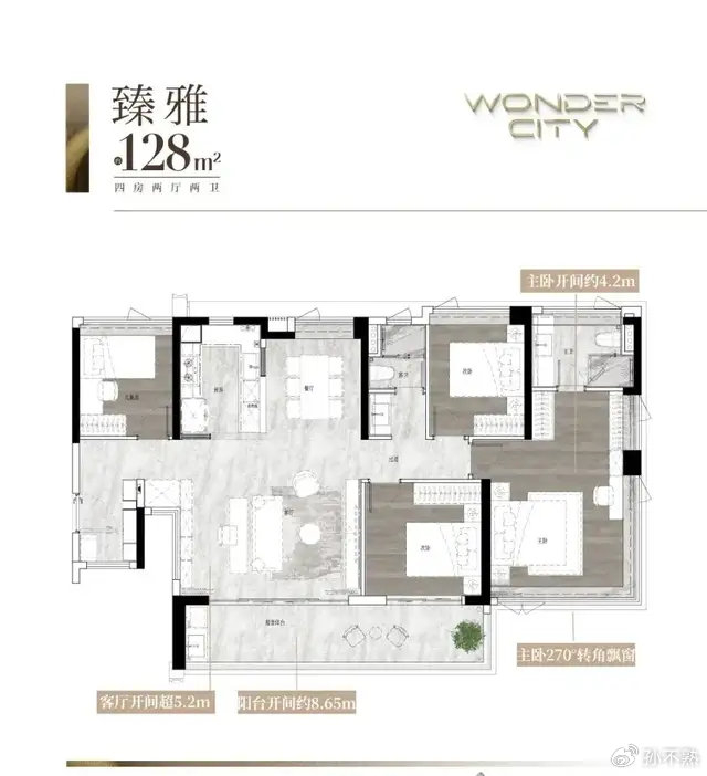 建面约128平户型,则在105平户型的基础上更强调共融: