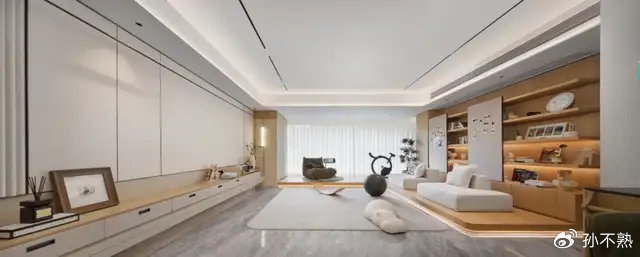 我们看看这张实景图,别看只是建面约105-128平的刚改产品,但其能打造出大平层同款的视觉尺度。
