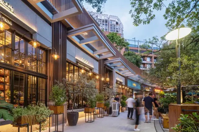 你看,20多年过去,它依然是珠江新城占地面积最多、园林最大、容积率最低、楼间距最宽的社区之一,也是罕见的一个能把配套商业做成国际商业街区的社区。