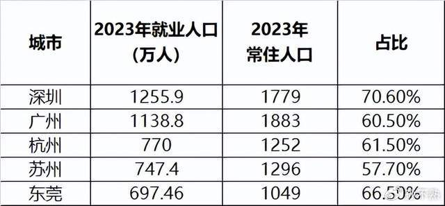 深圳的比例是什么?70.7%,真的是一骑绝尘,几乎把所有能干活的人都用上了。也难怪有人说,深圳是我国“班味”儿最重的城市。