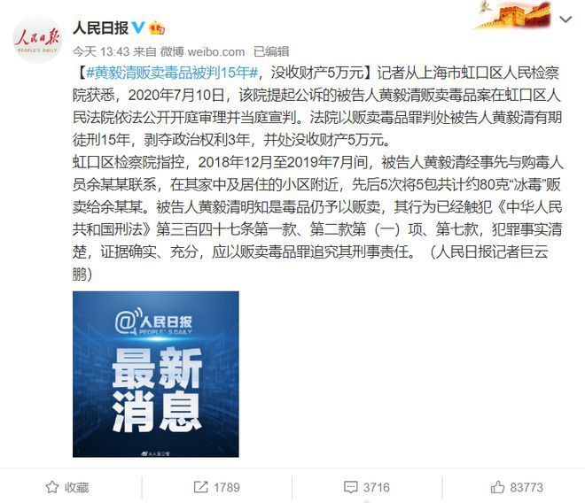 好在,上天最终眷顾了这个苦命的女人,2019年时,“作死”不断的黄毅清因涉毒被警方逮捕并公开通报,一年后,黄毅清被判入狱15年,自食其果。