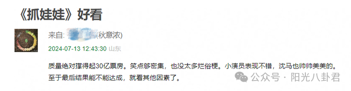 绝大多数声音普遍认同,《抓娃娃》在质量上远超《西虹市首富》,甚至完全可以媲美已经“封神”的《夏洛特烦恼》。