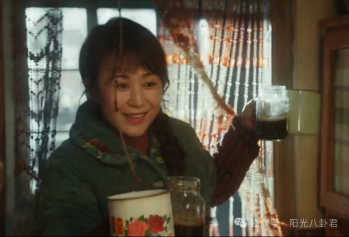马丽饰演的母亲春兰在接待朋友的时候,穿着一身破烂衣服,转头却从洗手间里拿出高档雪茄和上等咖啡,反差感十足。