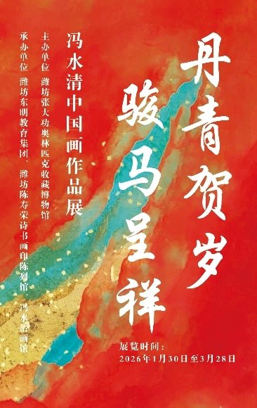 1月30日,“丹青贺岁骏马呈祥冯水清中国画作品展”在山东潍坊开幕。本次展览由张大功奥林匹克收藏博物馆主办。潍坊东明教育集团、潍坊陈寿荣诗书画印陈列馆、冯水清画馆共同承办。本次展览展出了冯水清为迎接新年到来创作的以马为主题的绘画作品二十多幅,以及他创作的山水、花鸟、人物画等作品三十余幅同时展出。展览现场与马相关的雕塑作品汉白玉立马、马踏飞燕铸铜作品、工艺木雕马、唐三彩瓷马等展品与展出画作相呼应,增添了浓浓的节日氛围。在春节来临之际为潍坊的观众送上了一场文化盛宴和迎接新年的美好祝福。