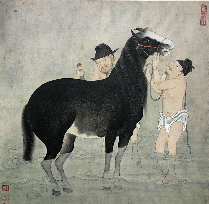 冯水清临《韩干胡人呈马图》(仿元人)