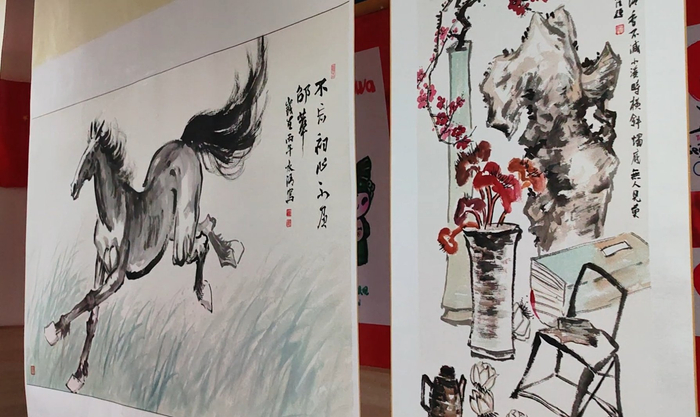 今天展出的这些以马为题材的画作,既有冯水清临摹的历代画马名家的传世精品,也有冯水清近几年创作的,他所绘之马,工笔与写意相结合。工笔绘画精细雅致,神态栩栩如生,写意作品笔墨酣畅淋漓,昂首奋蹄、神采飞扬,充满磅礴的生命力,成为一种奋发向上的精神和活力的象征。