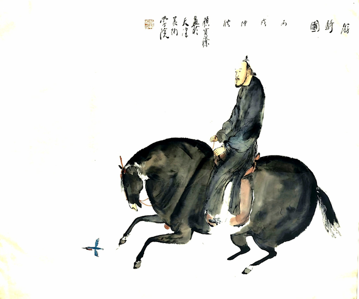 天津美术学院教授颜宝臻《游骑图》展览作品
