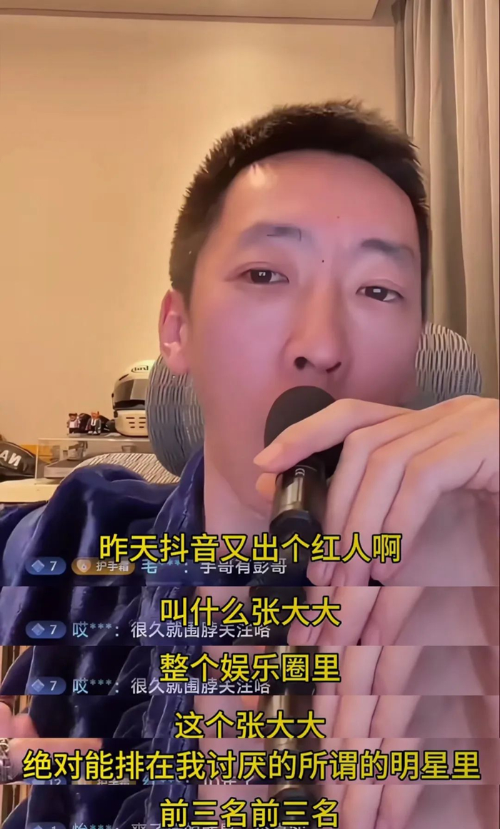 有一段时间张大大的直播连线热度特别高,频频上热搜,说话一向犀利的留几手就点评过,说张大大在他不喜欢的明星里能排前3,还揭秘张大大的连线一看就是演的,有剧本,不信去点开那些连线网友的地址,是不是都在浙江,留几手说这是一个屋里的人演戏呢。