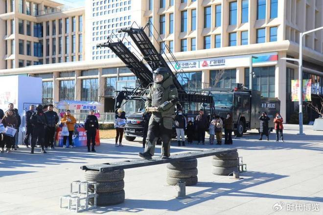 动态表演落幕,各互动区域热度不减,群众有序领取集赞卡,在装备展示区、宣传教育区、游戏互动区打卡闯关,沉浸式感受警营魅力。装备展示区里,暴龙装甲车、攀登突击车等特种车辆整齐排列,民辅警耐心为群众讲解并邀请大家上车体验、合影留念。警用装备台前,警用盾牌、防弹背心、防割手套等装备一应俱全,4名特警身着全套装备与群众热情互动;科技装备台更是人气爆棚,AR警用眼镜、5G执法记录仪、警用无人巡逻车、机器狗等前沿设备让人目不暇接,民警细致讲解着每款设备的实战应用,让群众真切感受“科技警察”的硬核实力。