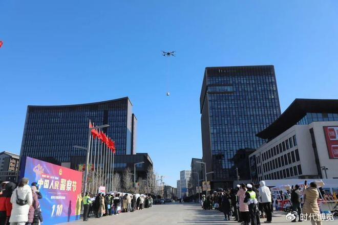 抬头仰望,科技赋能的“空中之眼”同样吸睛。警用无人机腾空而起,依次展示空中巡航、高空喊话、模拟投送物资等实战技能,以立体防控的硬核实力,展现了智慧警务为城市安全织就的“天网”,让现场群众直观感受到科技强警的蓬勃力量。
