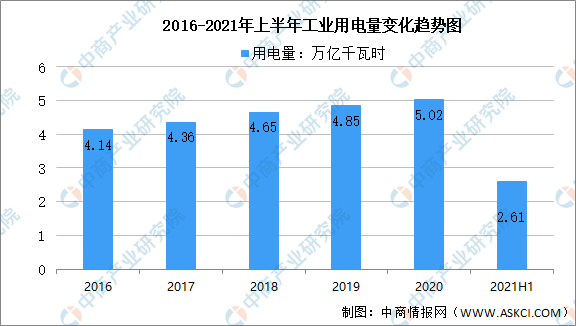 数据显示,2021年上半年,第二产业用电量2.66万亿千瓦时,同比增长16.6%,两年平均增长7.3%。一、二季度,第二产业用电量同比分别增长24.1%和10.6%,两年平均增速分别为7.4%和7.3%,保持平稳增长势头。其中,工业用电量达2.61万亿千瓦时。