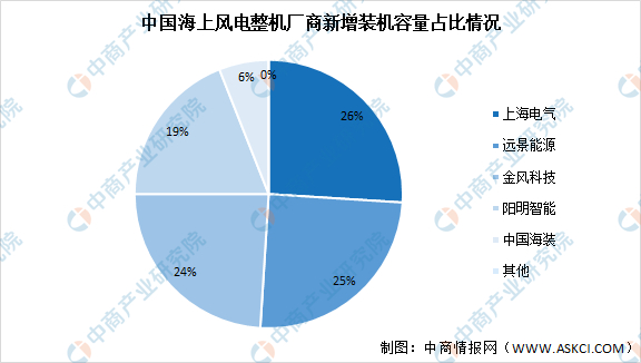 从新增装机容量来看,我国海上风电整机厂商呈现四强鼎力的竞争格局,上海电气、远景能源、金风科技和明阳智能的占比分别为26%、25%、24%和19%。随着海上风电行业的发展,行业的技术和市场门槛将得到进一步提升,核心企业将随着行业规模的扩张不断布局新产能,未来行业集中度有望继续攀升。