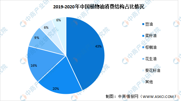 据USDA数据,2019-2020年度,豆油、菜籽油、棕榈油和花生油以及葵花籽油在我国植物油脂总消费结构中占比超过90%,其中豆油和菜籽油两项超过60%的占比。
