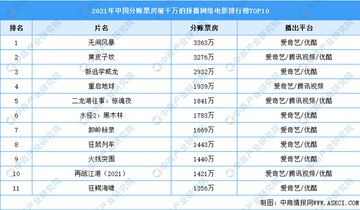 其中《无间风暴》《黄皮子坟》《新逃学威龙》《重启地球》《二龙湖往事:惊魂夜》等11部影片的总分账票房超干万。