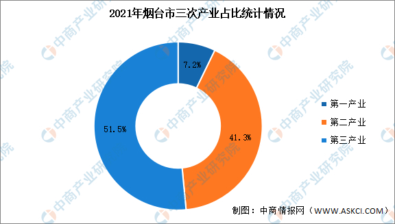 中商情报网讯:烟台市地处山东半岛中部,东连威海,西接潍坊,西南与青岛毗邻,北濒渤海、黄海,与辽东半岛对峙,并与大连隔海相望,共同形成拱卫首都北京的海上门户。2021年,烟台市生产总值为8711.75亿元,同比增长8.0%,两年平均增长5.8%。三次产业结构调整为7.2:41.3:51.5。产业结构主要从以下几个方面进行分析: