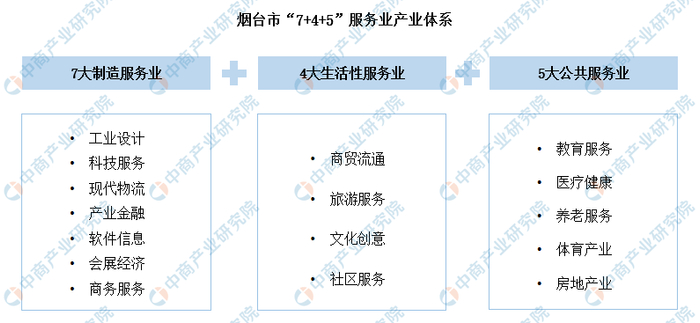“7+4+5”服务业产业体系为推动工业设计、科技服务、现代物流、产业金融、软件信息、会展经济、商务服务等7大制造服务业向专业化和高端化突破,商贸流通、旅游服务、文化创意、社区服务等4大生活性服务业向高品质和多样化升级,教育服务、医疗健康、养老服务、体育产业、房地产业等5大公共服务业向普惠性和均等化发展。