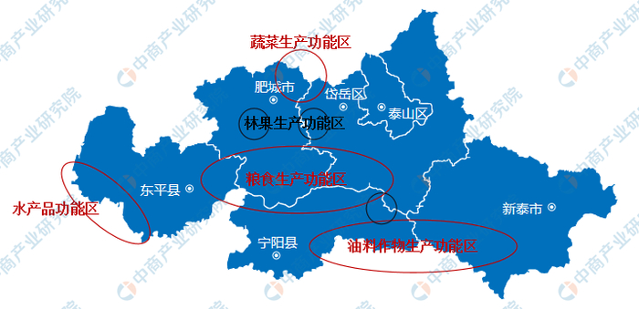 泰安市部分地区农产品功能区示意图