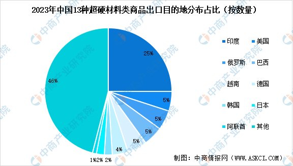 根据中国海关统计,2023年13种商品计出口到217个国家和地区,同比增加8个,占出口量5%以上的依次是印度25%、俄罗斯5%、巴西5%、美国5%、越南5%,占出口额5%以上的依次是香港区18%、印度14%、美国8%、俄罗斯5%。2023年从61个国家和地区进口(含中国本身),同比增加1个。进口总量5115吨,同比下降16.2%;金额393百万美元,同比下降16.1%。泰国占进口数量最多,达46%;日本占进口额最大,达35%。